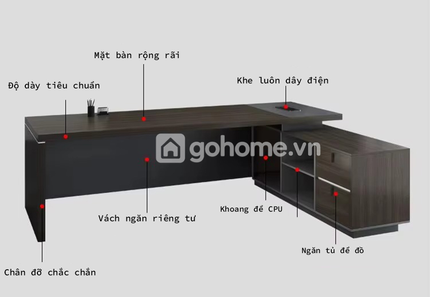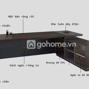 Với thiết kế mạnh mẽ, kiểu dáng chuẩn mực, cùng chất liệu cao cấp, sản phẩm không chỉ là nơi xử lý công việc hàng ngày mà còn là trung tâm thẩm mỹ cho toàn bộ căn phòng giám đốc.