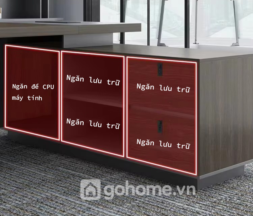 Mặt phụ tích hợp tủ phụ và ngăn kéo tiện lợi cho lưu trữ tài liệu