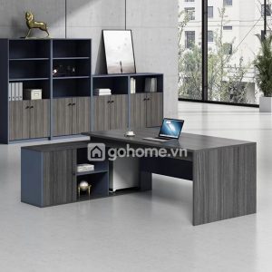 Thiết kế hình chữ L là lựa chọn tối ưu nhất cho giám đốc, trưởng phòng cần xử lý nhiều đầu việc cùng lúc. Với bố cục chia thành 2 mặt bàn: