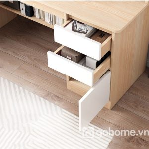Sản phẩm được thiết kế khoa học, tích hợp nhiều ngăn kệ và hộc tủ lưu trữ, đáp ứng nhu cầu từ học sinh, sinh viên đến người đi làm. Đặc biệt, chất liệu gỗ MDF cao cấp giúp bàn luôn bền đẹp, không cong vênh, chống mối mọt, giữ được vẻ sang trọng trong nhiều năm sử dụng.