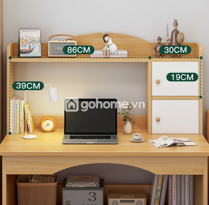 Bàn học gỗ nhỏ gọn liền kệ trang trí được chế tác từ gỗ MDF cao cấp phủ melamine chống ẩm, bền màu và dễ vệ sinh. Thiết kế bàn học thông minh với hệ thống kệ trang trí liền khối, mang đến không gian lưu trữ rộng rãi và tiện lợi.