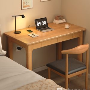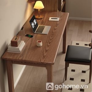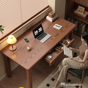 Bàn học thiết kế đơn giản được chế tác từ gỗ tự nhiên, mang lại cảm giác chắc chắn, bền bỉ theo thời gian.