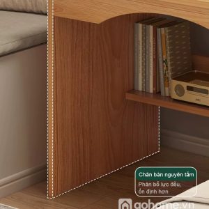 Bàn học liền giá sách gỗ MDF cao cấp được làm từ chất liệu gỗ MDF phủ melamine cao cấp, bề mặt mịn, chống ẩm, chống trầy xước, bền đẹp theo thời gian. Thiết kế tích hợp giá sách nhiều ngăn, hộc tủ và ngăn kéo, giúp lưu trữ sách vở, tài liệu và vật dụng cá nhân vô cùng tiện lợi.