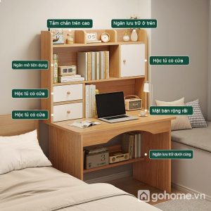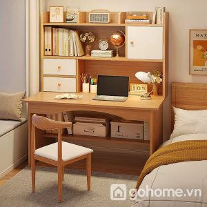 Tích hợp bàn học và giá sách, tiết kiệm không gian tối đa.