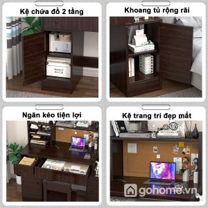 Tích hợp nhiều ngăn kệ, ngăn kéo, tủ chứa đồ.