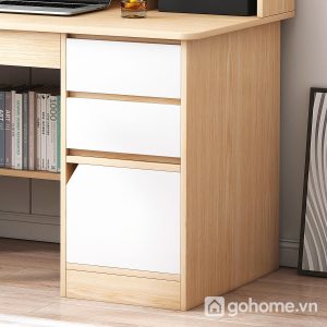 Sản phẩm có thiết kế tích hợp giá sách nhỏ gọn ngay trên bàn, giúp tối ưu diện tích và mang lại sự tiện lợi trong quá trình học tập. Ngăn kéo rộng, kệ để sách dưới bàn và giá sách trên mặt bàn cho phép phân chia khu vực lưu trữ khoa học, phù hợp cho cả học sinh, sinh viên và người đi làm.