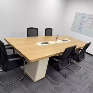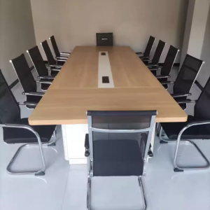 Một phòng họp hiệu quả cần có bàn họp đủ rộng để mọi người có thể thoải mái trao đổi và làm việc. Bàn họp chữ nhật sang trọng bằng gỗ công nghiệp được thiết kế với mặt bàn lớn, cho phép bố trí nhiều ghế ngồi xung quanh.