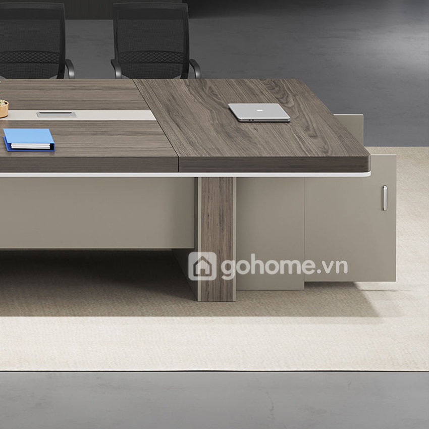 Phần tủ chia làm nhiều khoang, cửa mở có tay nắm âm và ổ khóa an toàn, thuận tiện cho việc cất giữ giấy tờ, laptop, thiết bị trình chiếu… Mọi thứ phục vụ cho cuộc họp đều nằm trong tầm tay, không cần rời phòng hay tìm kiếm mất thời gian.