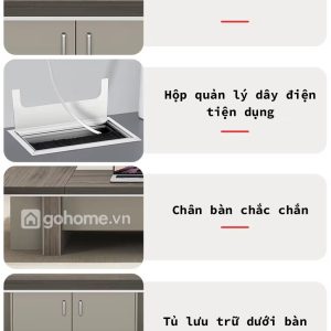 Tone màu xám vân gỗ kết hợp kem nhạt giúp sản phẩm mang vẻ ngoài hiện đại, trung tính, dễ phối với mọi phong cách văn phòng từ hiện đại, tối giản đến sang trọng.