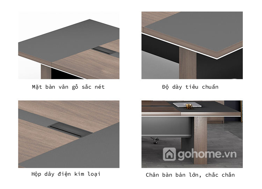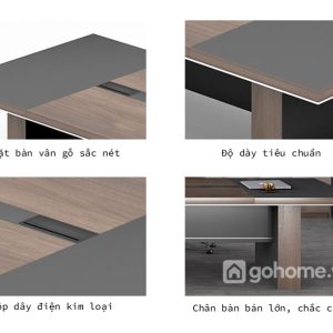 Mẫu bàn trong hình là đại diện tiêu biểu cho phong cách hiện đại – tinh tế – đậm chất lãnh đạo, phù hợp với các công ty chú trọng không gian nội thất cao cấp.