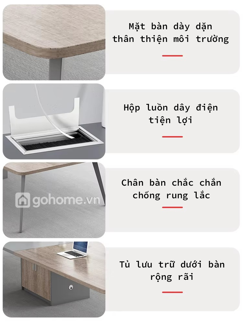 Hãy để không gian phòng họp của doanh nghiệp bạn trở nên gọn gàng, khoa học và tràn đầy năng lượng sáng tạo – chỉ với một chiếc bàn đúng gu, đúng chất lượng, đúng phong cách.