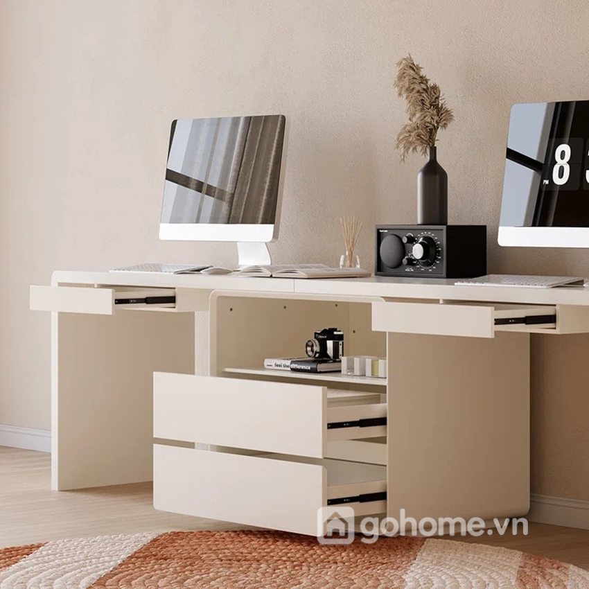 Phần hộc tủ ở giữa bàn là chi tiết rất thực tế trong quá trình sử dụng. Bạn có thể dùng để: