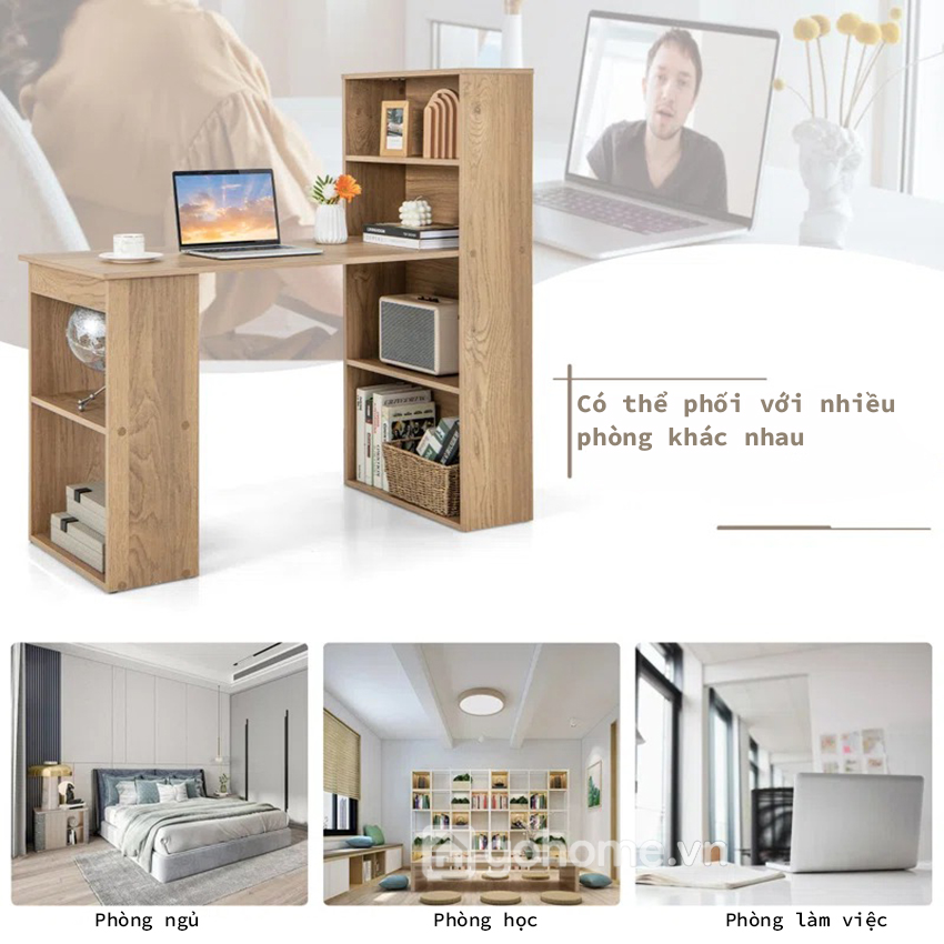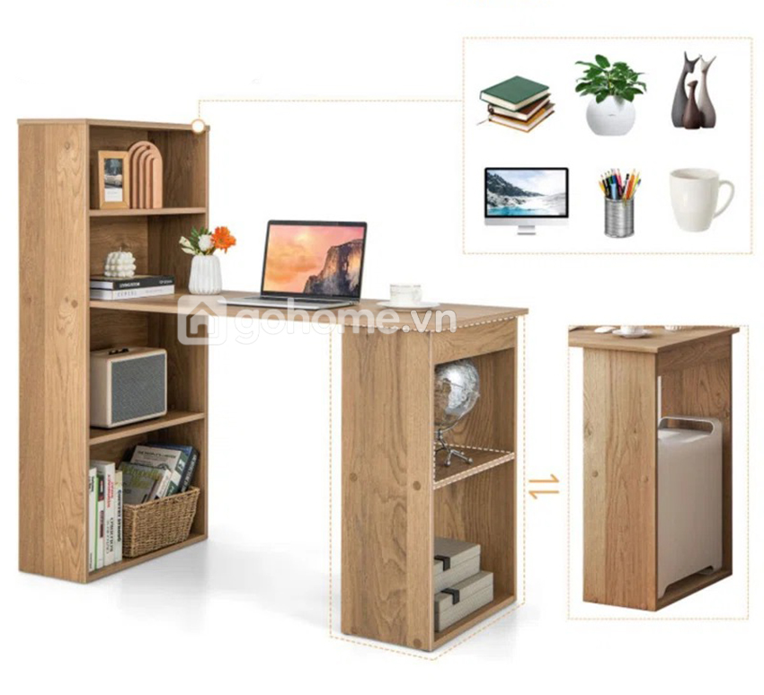 Chỉ với một sản phẩm, bạn đã có đầy đủ bàn + kệ sách trong cùng một bố cục hài hòa.