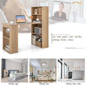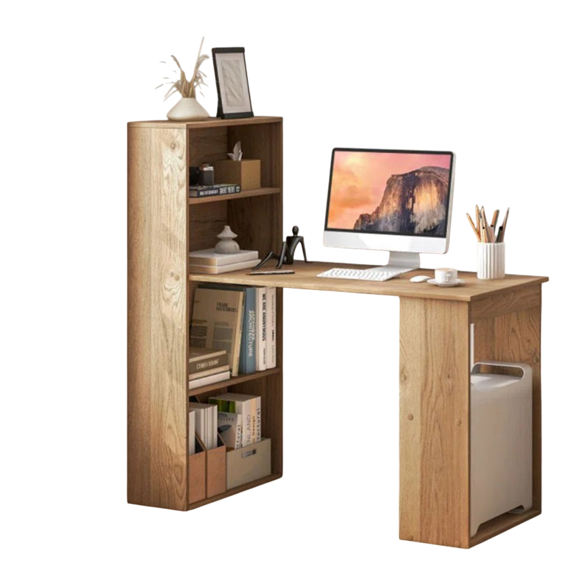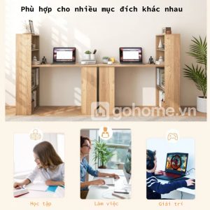 Bàn Làm Việc Gỗ Công Nghiệp Liền Kệ Sách – Giải Pháp 2 Trong 1 Cho Không Gian Gọn Gàng, Hiện Đại