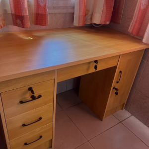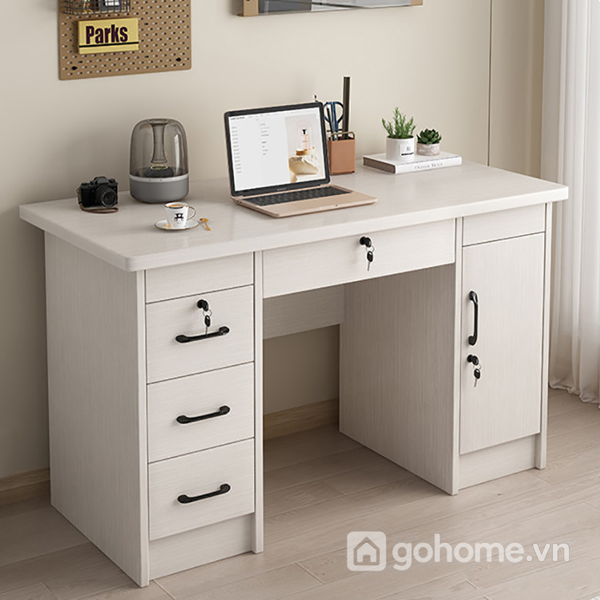 Thiết kế bàn chú trọng vào sự tiện lợi với hệ thống ngăn kéo và tủ cánh mở hai bên, giúp bạn dễ dàng phân loại và lưu trữ tài liệu, đồ dùng cá nhân một cách khoa học. Phần mặt bàn rộng rãi, phù hợp cho cả làm việc, học tập hoặc setup góc sáng tạo cá nhân.