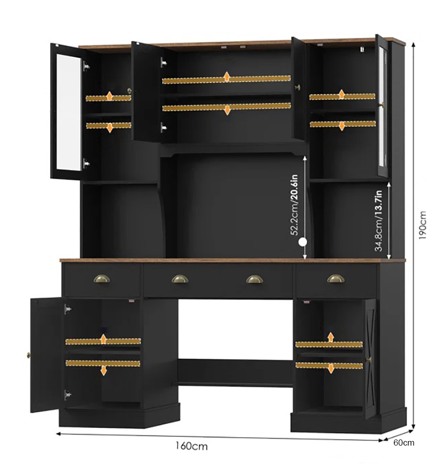 Gam đen nhám hiện đại kết hợp mặt gỗ nâu ấm tạo nên sự tương phản tinh tế, phù hợp với nhiều phong cách nội thất như hiện đại, tân cổ điển nhẹ, home office cao cấp hoặc phòng làm việc tại gia sang trọng.
