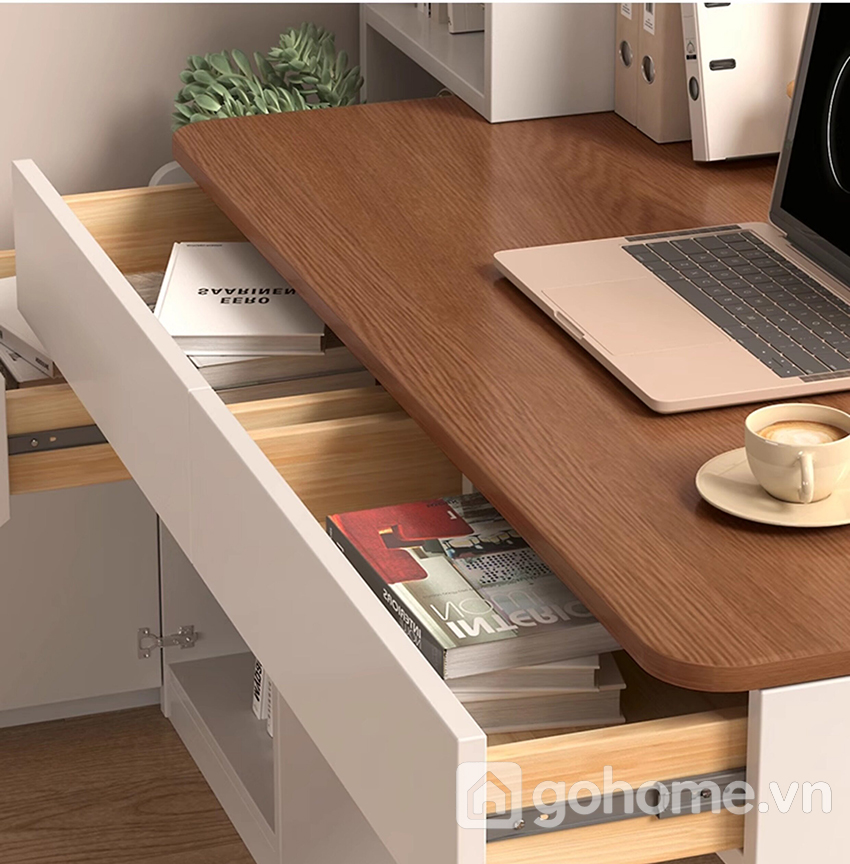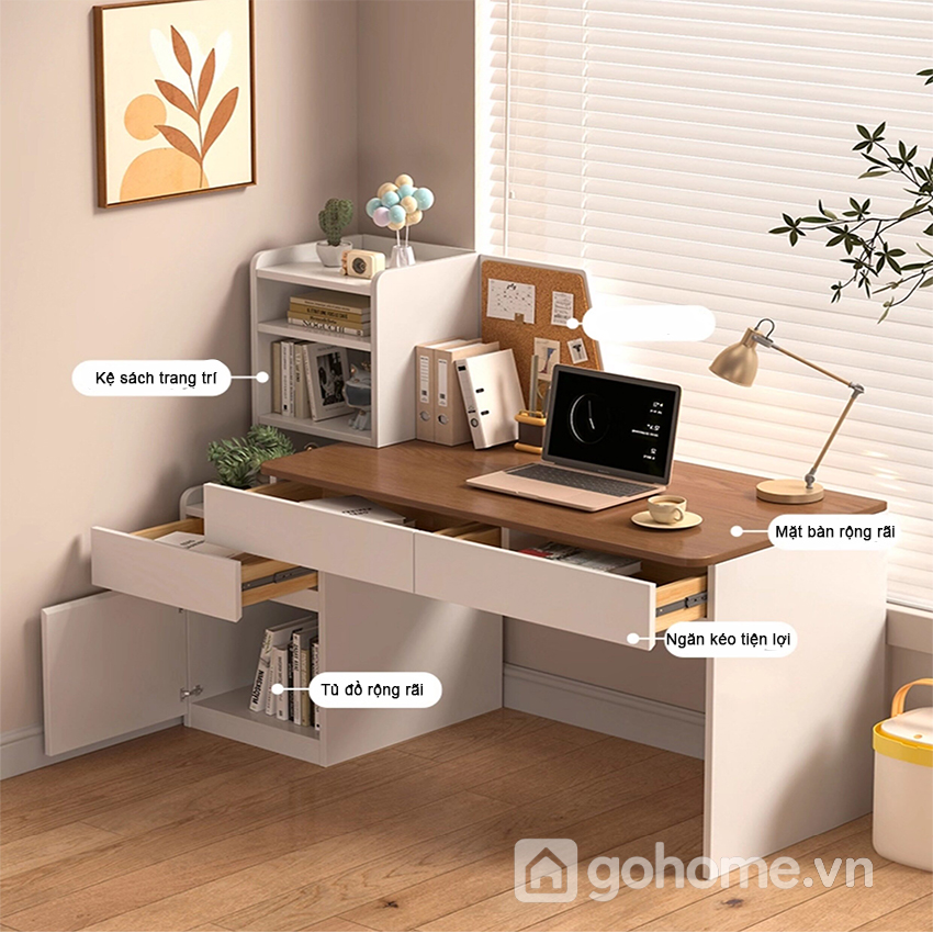 Sản phẩm kết hợp giữa bàn làm việc và kệ sách nhỏ, giúp: