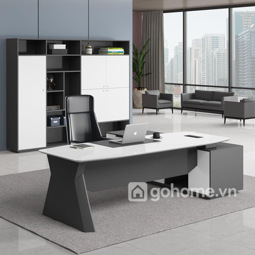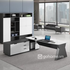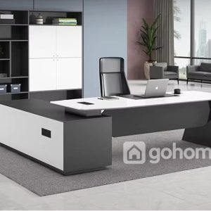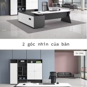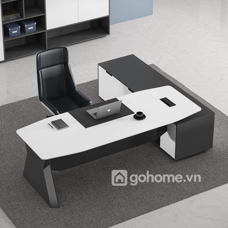 Mẫu bàn trong ảnh là sự kết hợp hoàn hảo giữa thiết kế hiện đại, đường nét tinh xảo và tone màu tương phản đẳng cấp, mang lại vẻ đẹp trẻ trung, thanh lịch nhưng không kém phần mạnh mẽ – rất phù hợp với văn phòng của các CEO, nhà sáng lập, quản lý cấp cao hay giám đốc điều hành thế hệ mới.