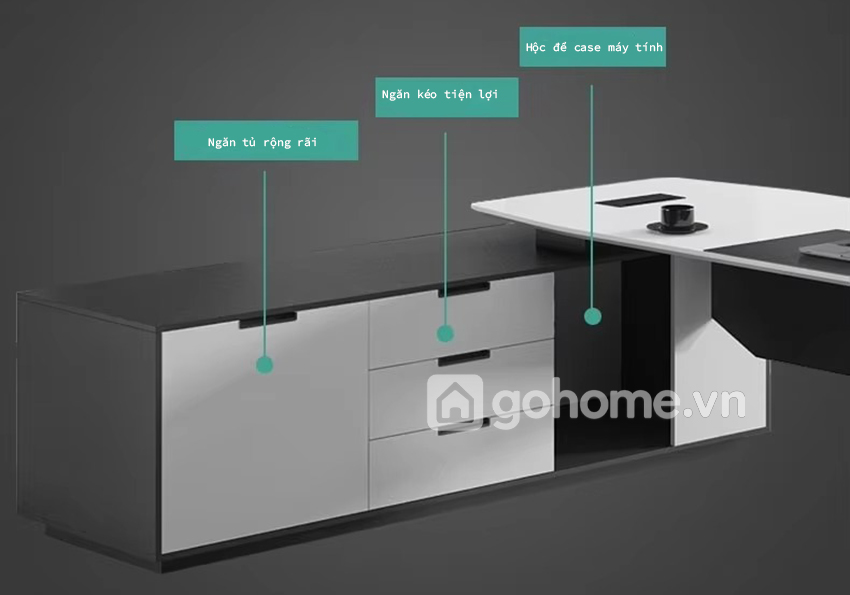Bao gồm các ngăn kéo có khóa, khoang chứa tài liệu, hộc trống tiện dụng