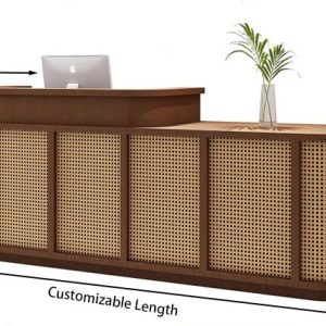 Bề mặt bàn được hoàn thiện bằng gỗ MDF phủ Melamine cao cấp, chống ẩm, chống trầy xước và dễ vệ sinh. Phần mặt trước được thiết kế độc đáo với họa tiết nan gỗ đan thanh lịch, gợi liên tưởng đến phong cách nội thất Japandi hoặc Đông Dương hiện đại, giúp không gian thêm phần gần gũi, mềm mại mà vẫn giữ vẻ chuyên nghiệp.