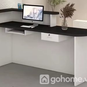 Mặt bàn hai tầng phân tách hợp lý giữa khu vực giao tiếp khách hàng và khu vực làm việc, giúp thao tác dễ dàng và đảm bảo tính riêng tư.