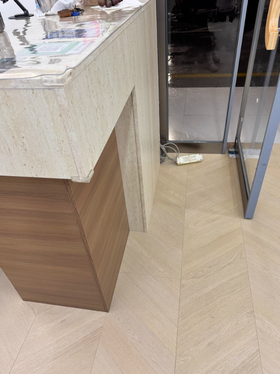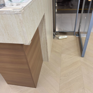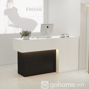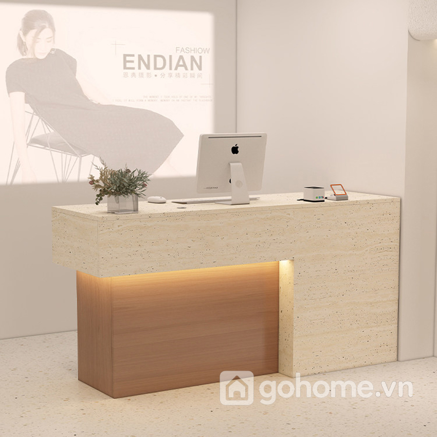 Thiết kế này mang đến cảm giác vừa tối giản, vừa độc đáo – giúp quầy lễ tân không bị “nhàm chán” như các mẫu truyền thống.