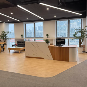 Quầy lễ tân thiết kế rất đẹp, nhìn hiện đại và sang trọng, đặt ở văn phòng rất nổi bật.
