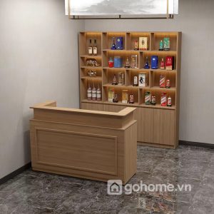 Một bàn quầy thu ngân đơn giản bằng gỗ không chỉ là nơi giao dịch, thanh toán mà còn là bộ mặt thương hiệu của cửa hàng, spa hay showroom. Với thiết kế tối giản, chất liệu gỗ tự nhiên ấm áp và đường nét thanh lịch, mẫu quầy này mang đến cảm giác gần gũi, chuyên nghiệp và bền vững theo thời gian.