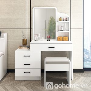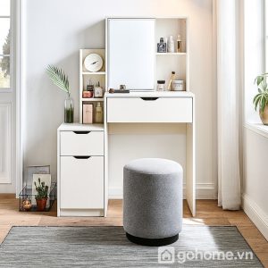 Bàn trang điểm phối kệ kính hiện đại, tối giản, tinh tế – thiết kế thông minh giúp tối ưu không gian sống, phù hợp nhiều phong cách nội thất.