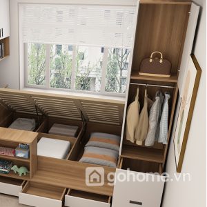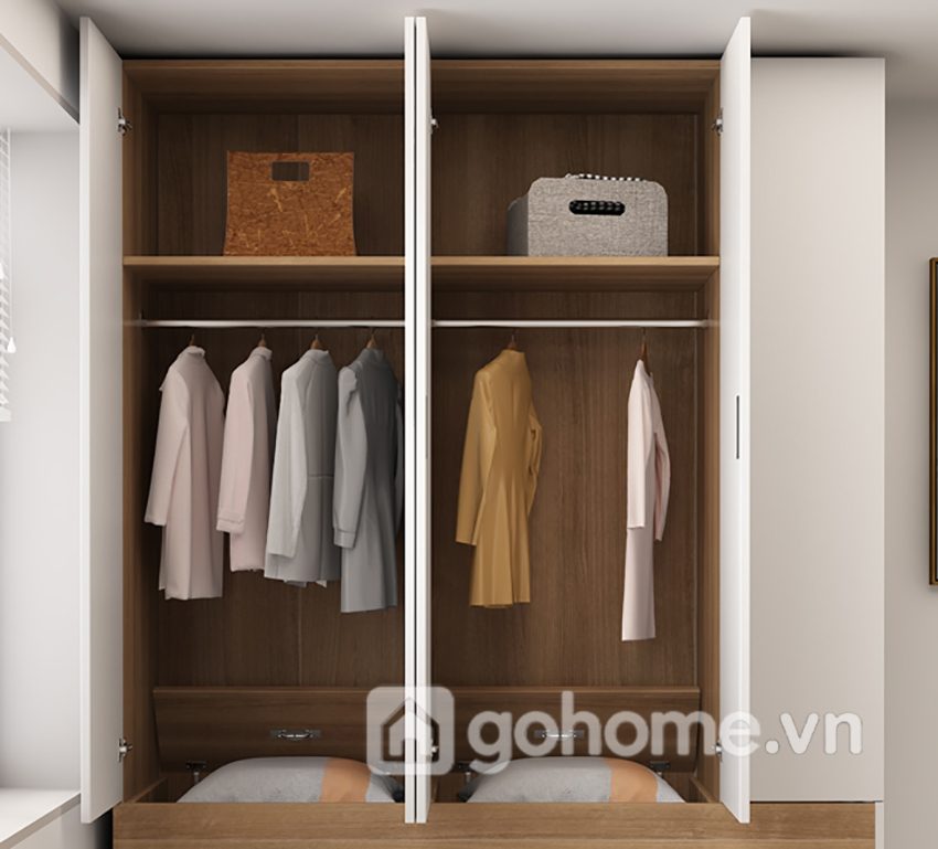 Tủ quần áo kết hợp khoang mở và cánh kín tiện lợi