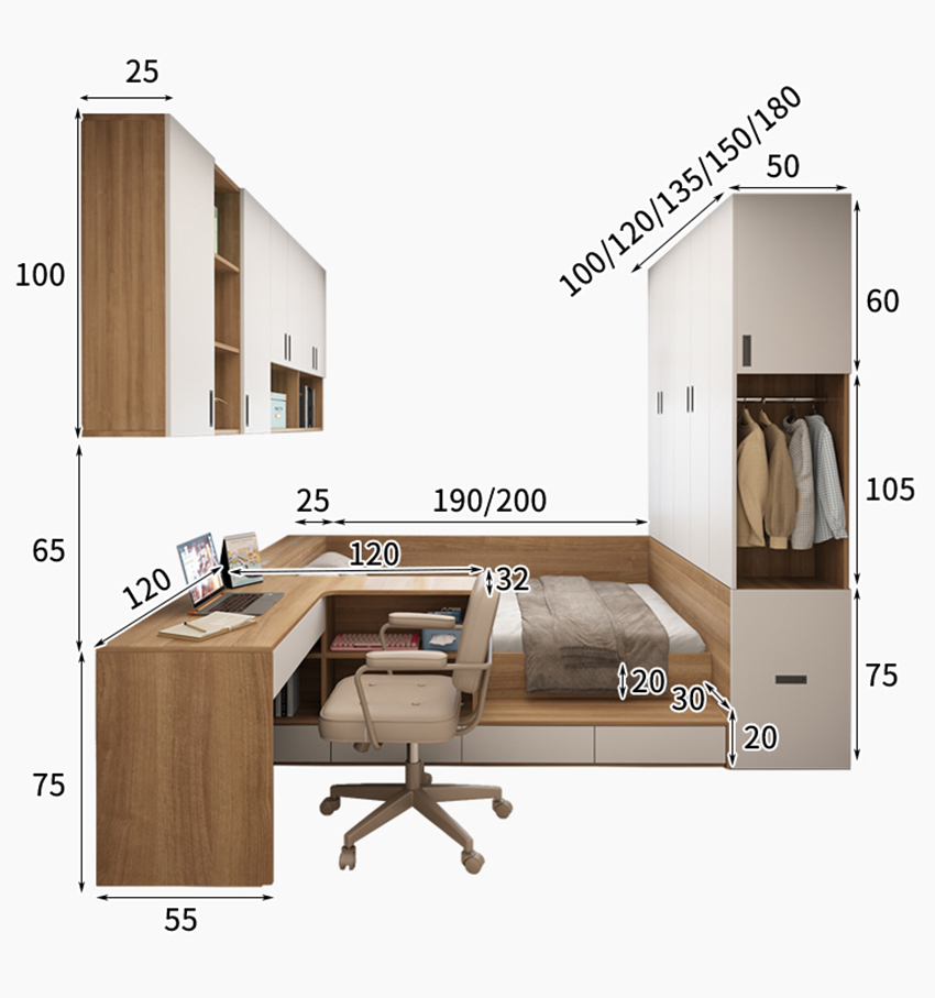 Giường Ngủ Kèm Tủ Quần Áo, Kệ Trang Trí Treo Tường Và Bàn Học Gỗ MDF Cao Cấp – Combo Nội Thất Đa Năng Cho Phòng Ngủ Hiện Đại