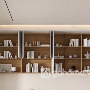 Thiết kế dạng kệ mở xen kẽ tủ đóng, giúp cân bằng thẩm mỹ và công năng – vừa trưng bày đẹp, vừa tránh bụi bẩn.