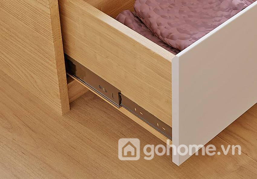 - Ray trượt kéo nhẹ, đóng êm nhờ bản lề giảm chấn.