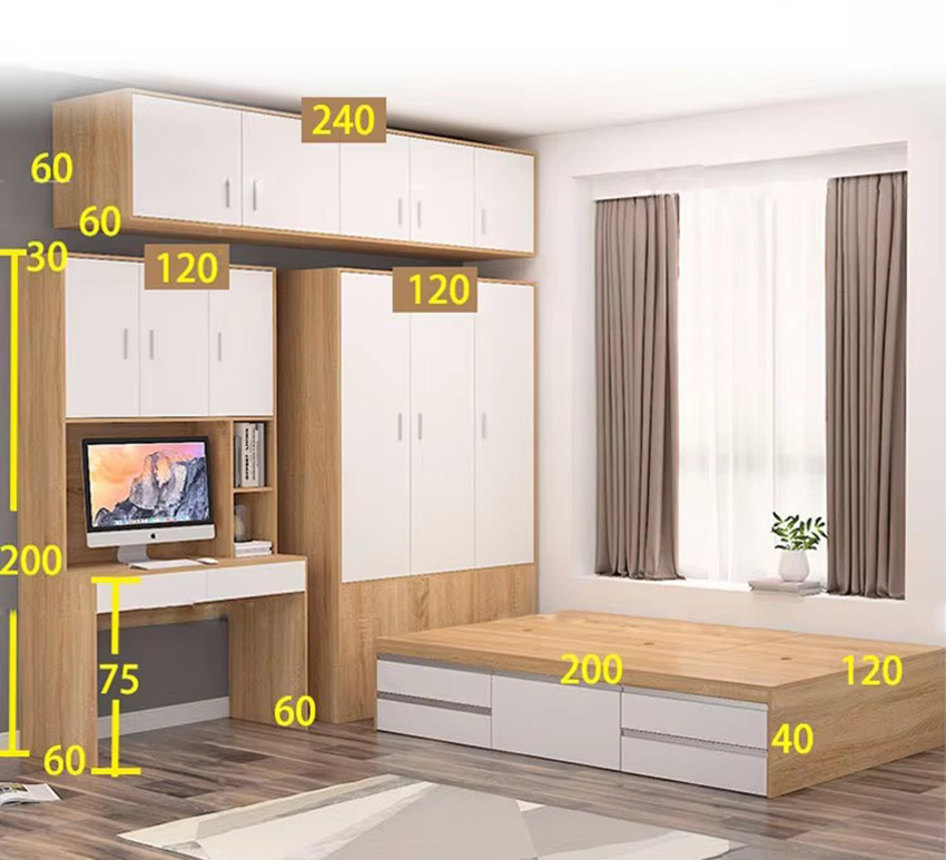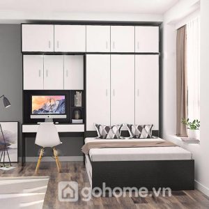 Không cần quá nhiều món đồ rời rạc. Chỉ với một combo giường ngủ kết hợp tủ quần áo và bàn làm việc gỗ MDF cao cấp, bạn đã có thể sở hữu: