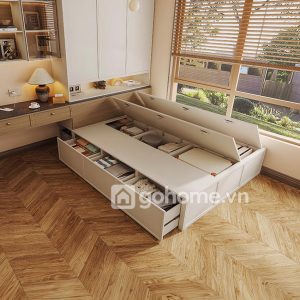 Có hộc kéo phía dưới giường: đựng chăn, ga, quần áo mùa