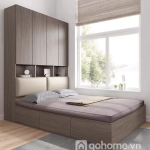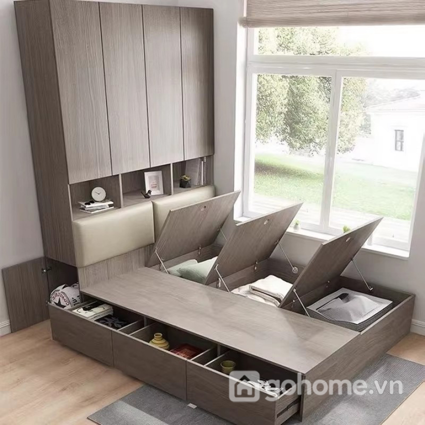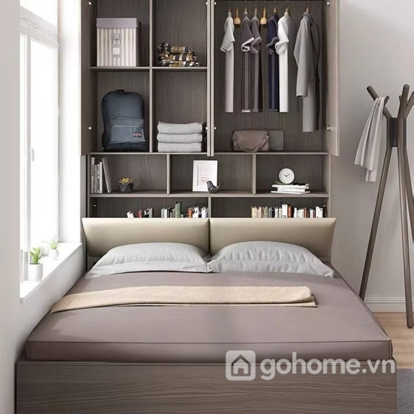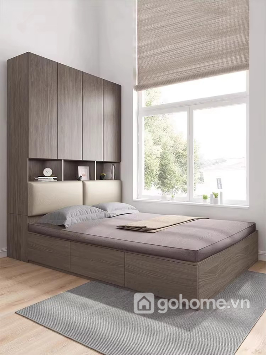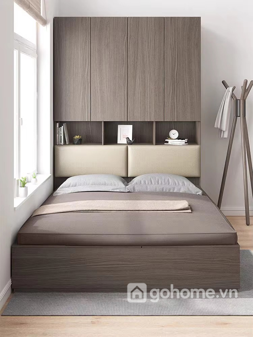 Thay vì mua giường + tủ quần áo riêng lẻ rồi mất thời gian đo đạc, phối màu và sắp đặt, mẫu combo này đã liên kết hai vật dụng lớn thành một khối liền mạch. Nhờ đó: