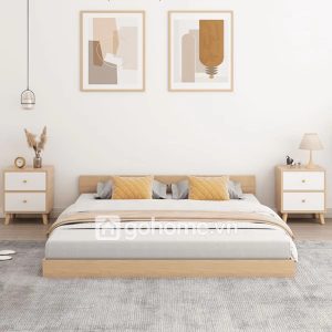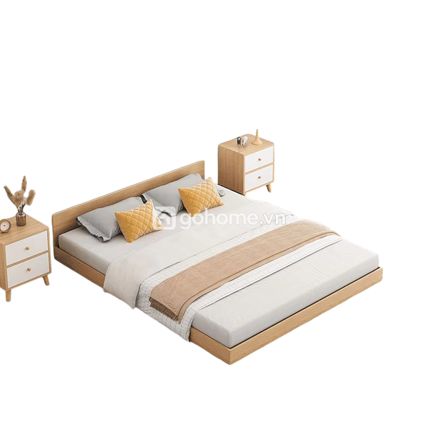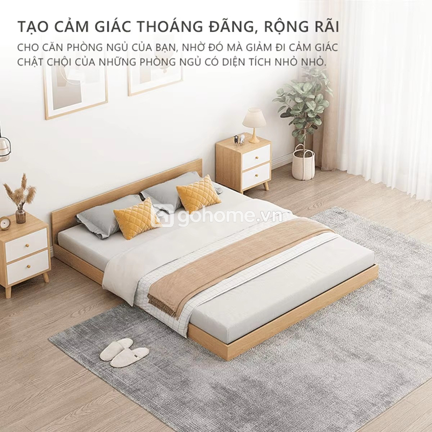 Mặt giường được làm từ gỗ MDF phủ melamine cao cấp, có khả năng chống ẩm, chống trầy xước và hạn chế cong vênh trong quá trình sử dụng. Nhờ thiết kế bệt, giường không chỉ tiết kiệm diện tích mà còn dễ dàng phối hợp với các loại nội thất khác như tủ quần áo, bàn trang điểm hay tab đầu giường.