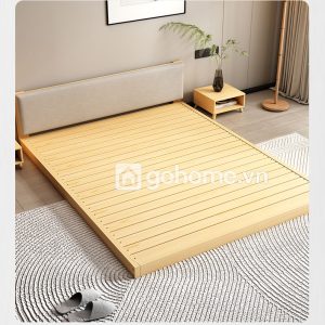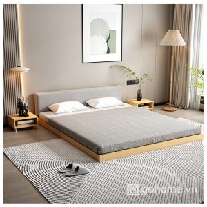 Giường bệt kiểu Nhật thiết kế đơn giản lấy cảm hứng từ triết lý sống “Zen” của người Nhật – đề cao sự thanh tịnh và giản lược. Kiểu dáng thấp sàn, khung gỗ chắc chắn kết hợp đầu giường bọc nệm vải mang lại cảm giác vừa thoải mái vừa an toàn, đặc biệt phù hợp cho gia đình có trẻ nhỏ.