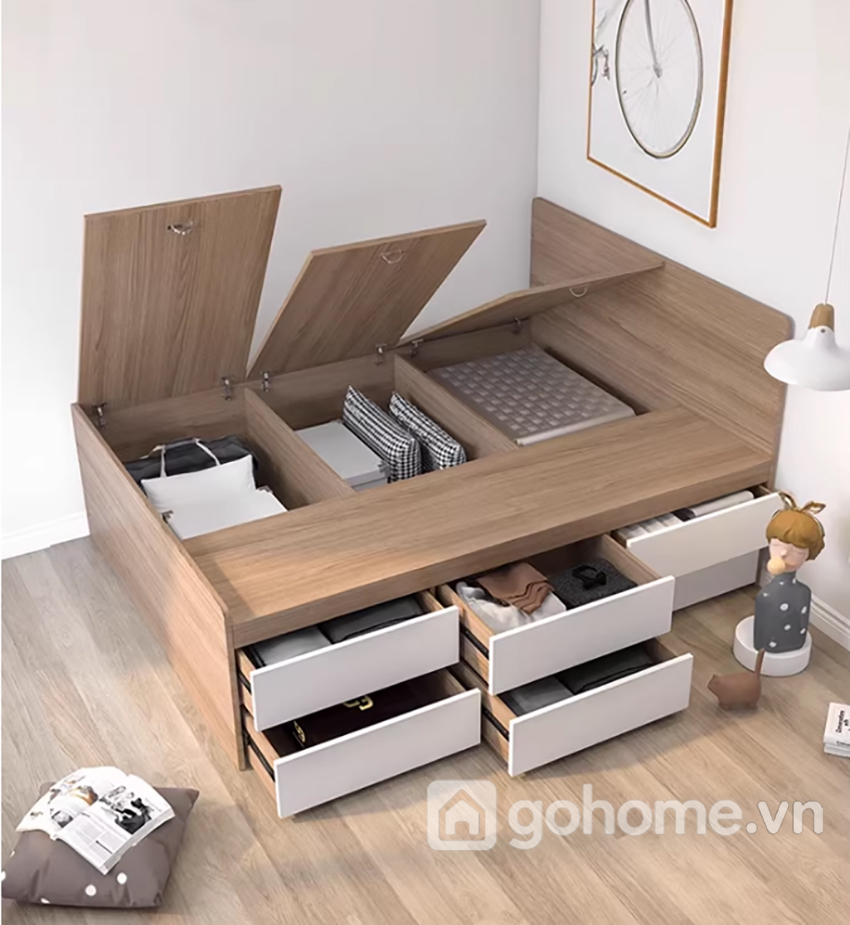Đây chính là ưu điểm khiến nhiều khách hàng yêu thích các dòng giường ngủ thông minh nhiều ngăn, giường ngủ tích hợp hộc kéo, hay giường ngủ đa năng cho căn hộ nhỏ.