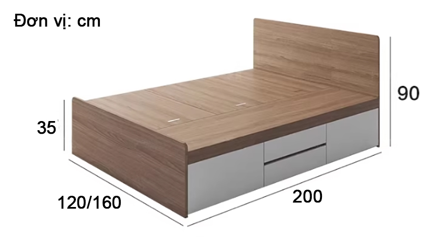 Thiết kế thông minh với hệ thống khoang chứa đồ rộng rãi, ngăn kéo tiện lợi cùng phong cách tối giản hiện đại giúp sản phẩm đáp ứng hoàn hảo cả về thẩm mỹ lẫn công năng. Đây là giải pháp nội thất lý tưởng cho những không gian sống hiện đại, đặc biệt là căn hộ chung cư hoặc phòng ngủ nhỏ.