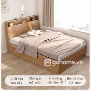 Giường hộp đơn giản có kệ để đồ được sản xuất từ gỗ MDF cao cấp phủ melamine chống ẩm, vừa bền đẹp vừa chống mối mọt, trầy xước hiệu quả. Thiết kế hộp chắc chắn, bo góc mềm mại tạo sự an toàn, phù hợp cho cả gia đình có trẻ nhỏ.