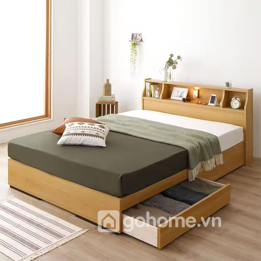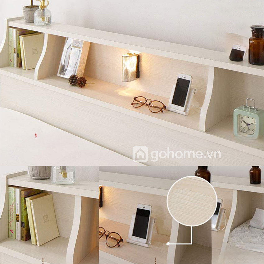 Phần đầu giường được tích hợp kệ mở với nhiều ô nhỏ để bạn dễ dàng: