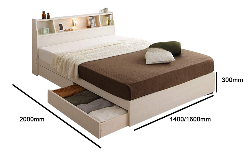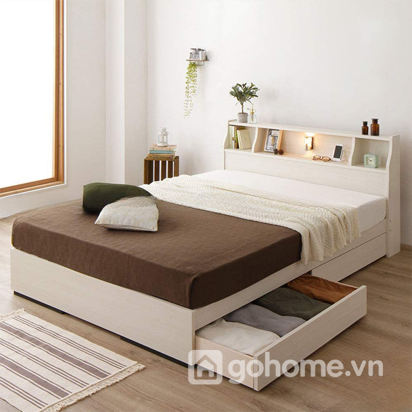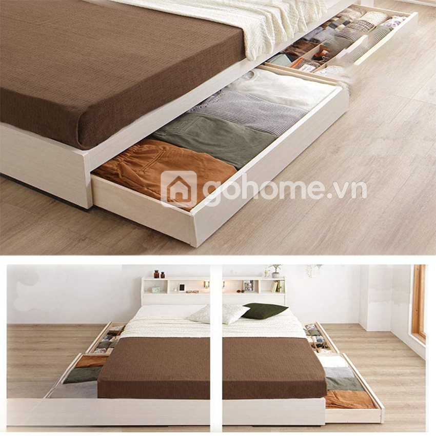 Không chỉ đẹp, chiếc giường này còn cực kỳ thực dụng khi tích hợp ngăn kéo lớn bên hông – tận dụng không gian trống dưới mặt giường để bạn có thể lưu trữ: