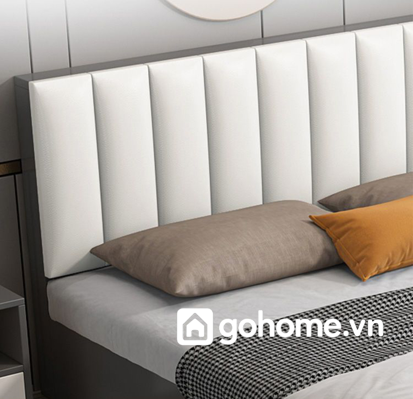 Thiết kế đầu giường cao bọc da êm ái không chỉ tăng thêm vẻ đẳng cấp cho không gian phòng ngủ mà còn giúp người dùng có thể thoải mái tựa lưng đọc sách, thư giãn. Chất liệu da cao cấp dễ vệ sinh, mềm mại và bền đẹp theo thời gian.