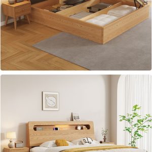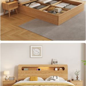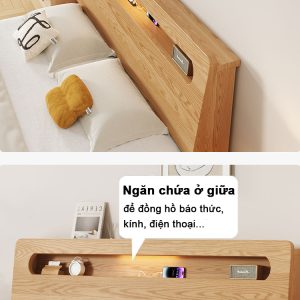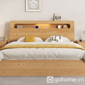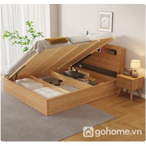 Hệ thống ngăn chứa rộng rãi ẩn dưới nệm kết hợp cùng ben nâng thủy lực cao cấp, cho phép bạn dễ dàng cất giữ chăn ga, gối, quần áo theo mùa hoặc các vật dụng cá nhân một cách gọn gàng. Đầu giường được tích hợp kệ để đồ trang trí và vật dụng nhỏ, giúp bạn có không gian tiện lợi ngay trong tầm tay.