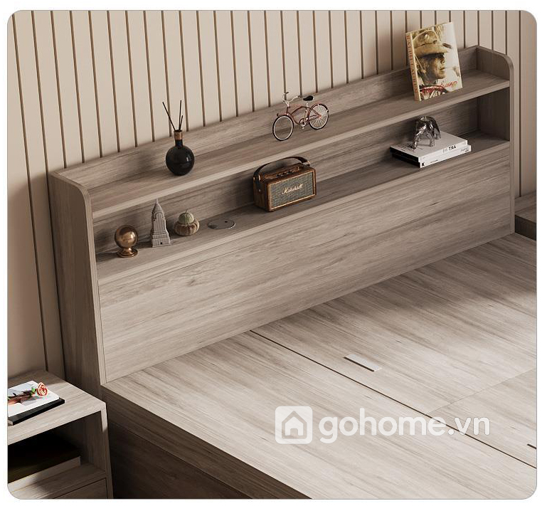 Thiết kế liền kệ tiện lợi, để sách, đồng hồ, khung ảnh hay đèn ngủ.