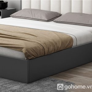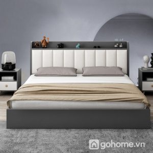 Chiếc giường ngủ này được thiết kế thông minh với kệ trang trí tích hợp ngay đầu giường, cho phép bạn vừa nghỉ ngơi vừa tận dụng để đặt sách, đèn ngủ, đồ lưu niệm hay những món đồ decor nhỏ xinh. Đây chính là giải pháp nội thất cực kỳ tiện lợi, đặc biệt phù hợp với những căn hộ chung cư hoặc phòng ngủ hiện đại cần tối ưu diện tích.