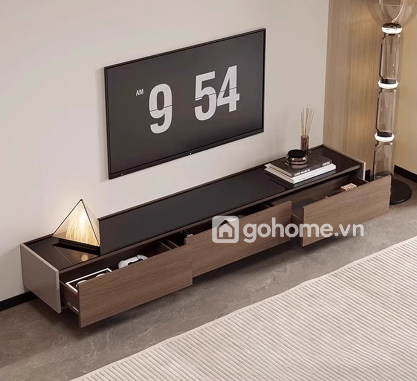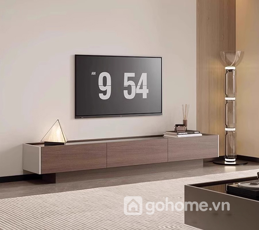 Dù sở hữu diện tích khiêm tốn, căn hộ của bạn vẫn có thể trở nên gọn gàng, rộng rãi nhờ kệ tivi nhỏ gọn được thiết kế thông minh. Chiều sâu chỉ 35cm nhưng vẫn đảm bảo đầy đủ chức năng để tivi, thiết bị giải trí, đồ trang trí và sách báo. Đây là giải pháp lý tưởng cho các căn hộ dưới 70m², phòng khách chung cư mini hay nhà ống mặt tiền nhỏ.