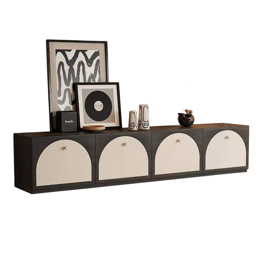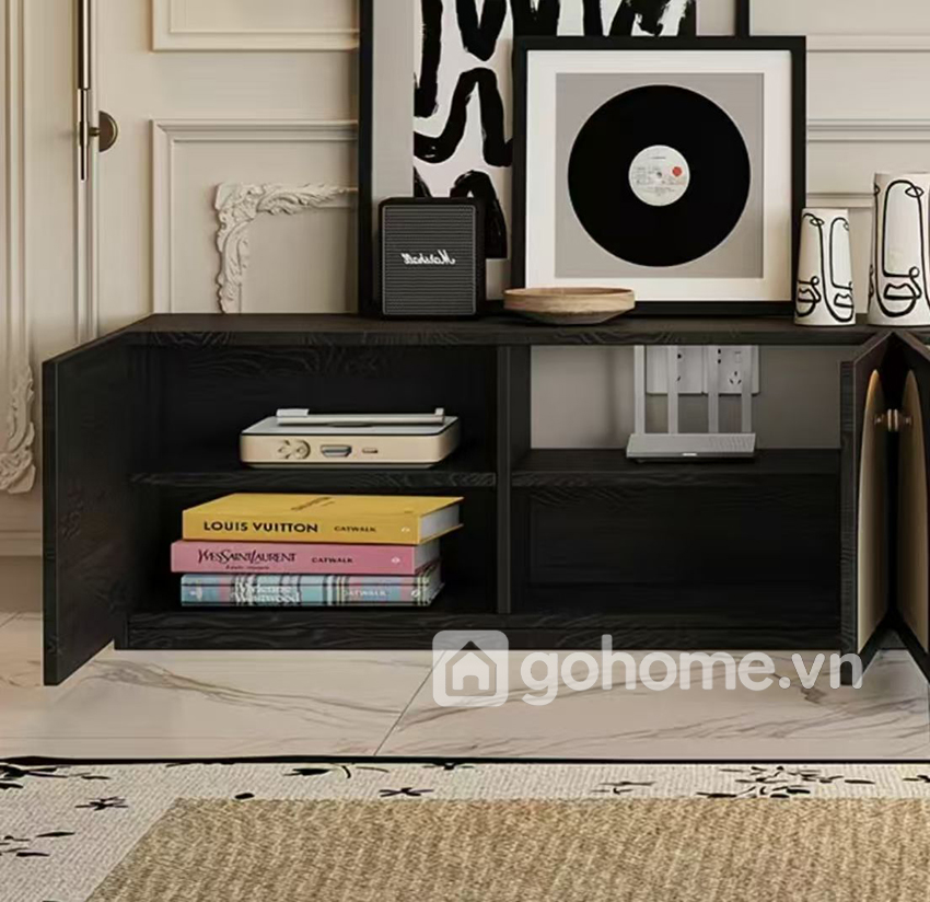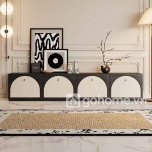 Một mẫu kệ tivi mang phong cách hiện đại pha chút nghệ thuật, với thiết kế cửa tủ hình vòm cực kỳ lạ mắt – chắc chắn sẽ khiến phòng khách của gia đình bạn trở nên nổi bật và tinh tế hơn bao giờ hết.