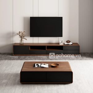 Mẫu kệ tivi gỗ hiện đại đẹp mà anh đang xem sở hữu thiết kế thanh thoát, kết hợp màu nâu gỗ ấm cùng sắc đen cá tính, tạo nên điểm nhấn đẳng cấp cho không gian nội thất.